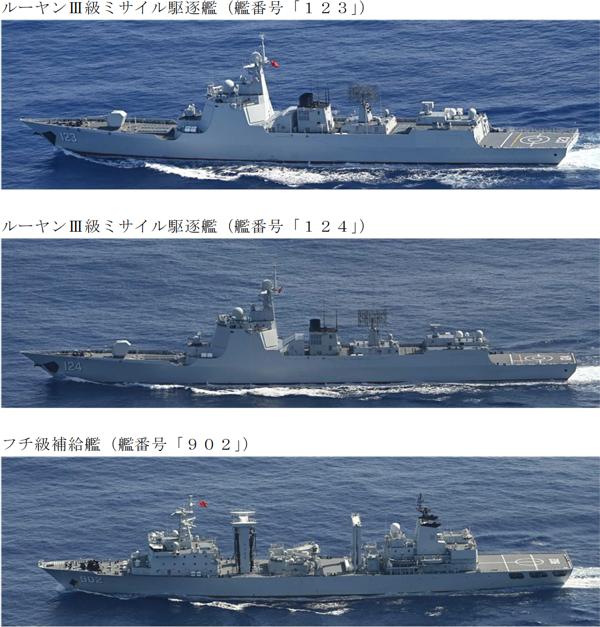 PLAN destroyers CNS Huainan (123) and CNS Kaifeng (124), along with fleet oiler CNS Dongpinghu (902), were spotted sailing northwest 124 miles southeast of Miyako Island around 10 a.m. local time Friday, Japan’s Joint Staff Office said in a news release.